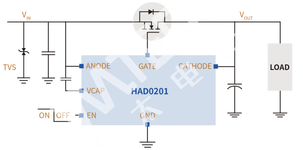 在鋰電池包充放電及并包場景中,反向電流可能對系統(tǒng)造成嚴重損害。華太HAD0201理想二極管控制器可搭配外部MOSFET,實現(xiàn)低損耗、快速響應的反向保護。